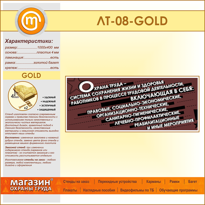 Лозунг «Охрана труда - система сохранения жизни и здоровья...» (LT-08-GOLD) в Ижевске купить