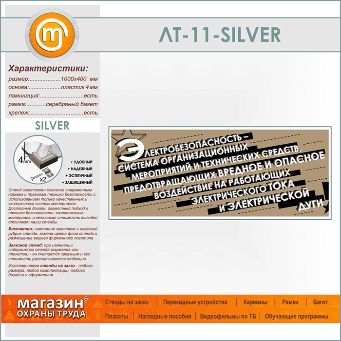 Лозунг «Электробезопасность - система мероприятий...» (LT-11-SILVER) в Ижевске купить