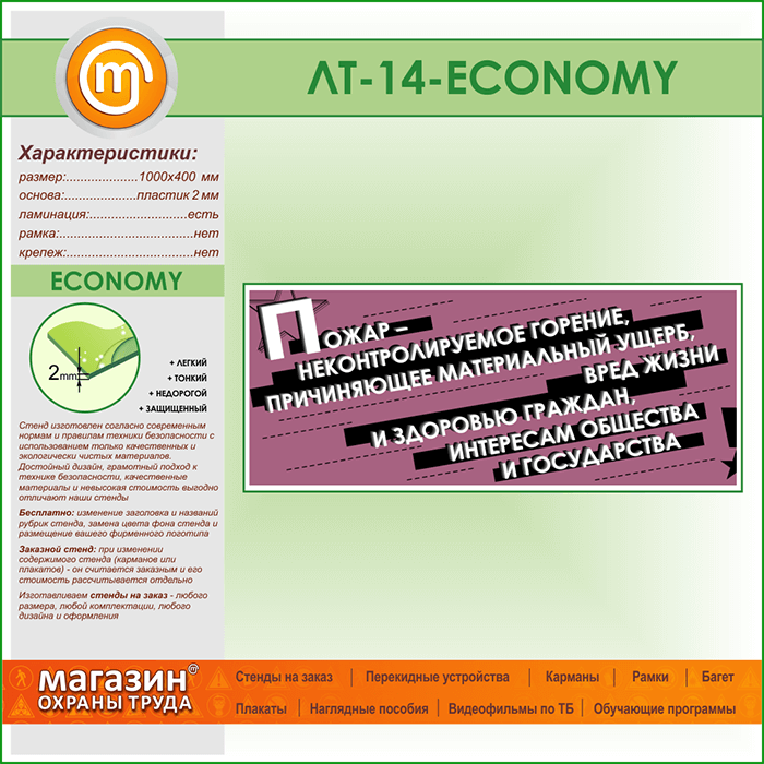 Лозунг «Пожар - неконтроллируемое горение...» (LT-14-ECONOMY) в Ижевске купить