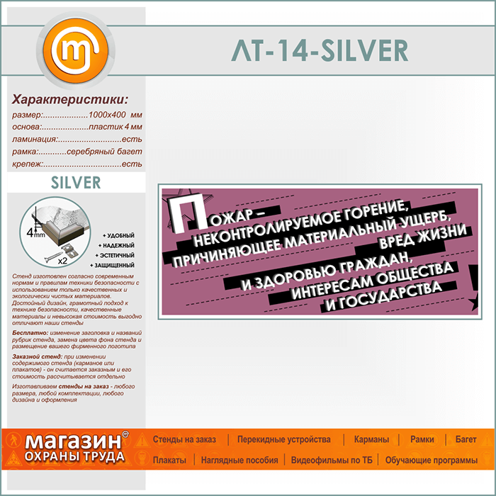 Лозунг «Пожар - неконтроллируемое горение...» (LT-14-SILVER) в Ижевске купить