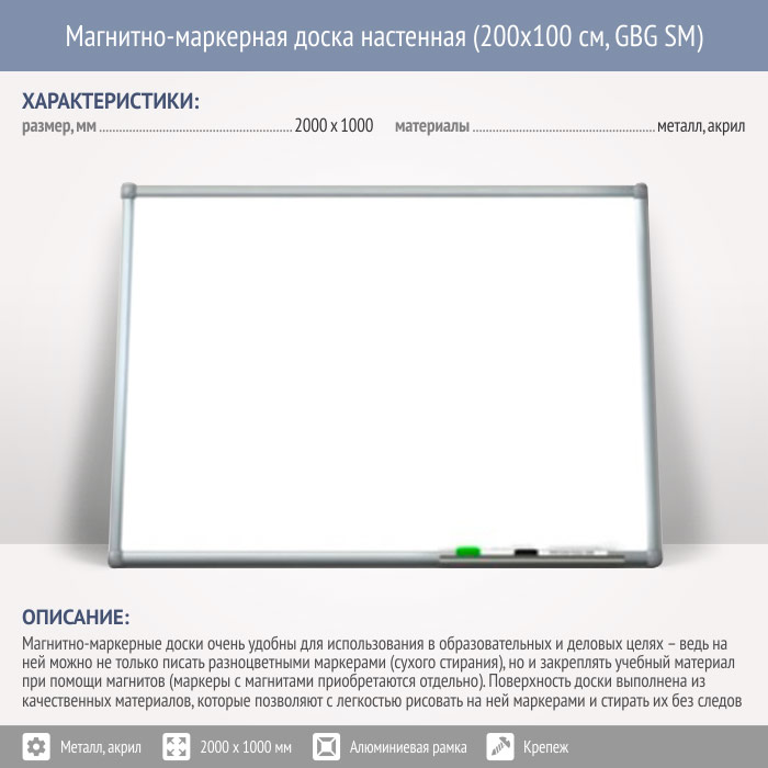 Магнитно-маркерная доска настенная (200x100 см, GBG SM) в Ижевске купить