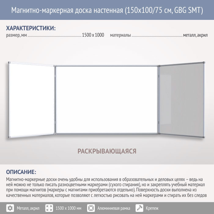 Магнитно-маркерная доска настенная (150x100/75 см, GBG SMT) в Ижевске купить