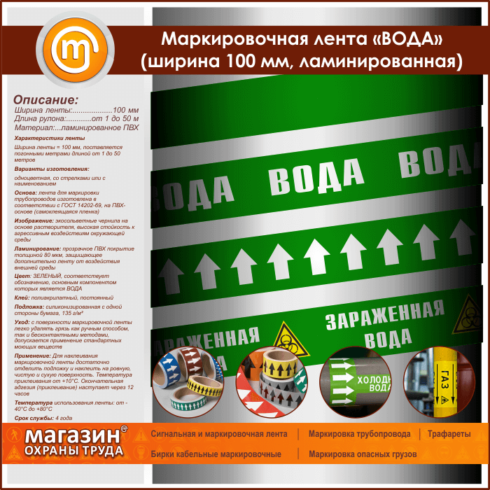 Маркировочная лента «ВОДА» (ширина 100 мм, самоклеящаяся плёнка с ламинированием) в Ижевске купить