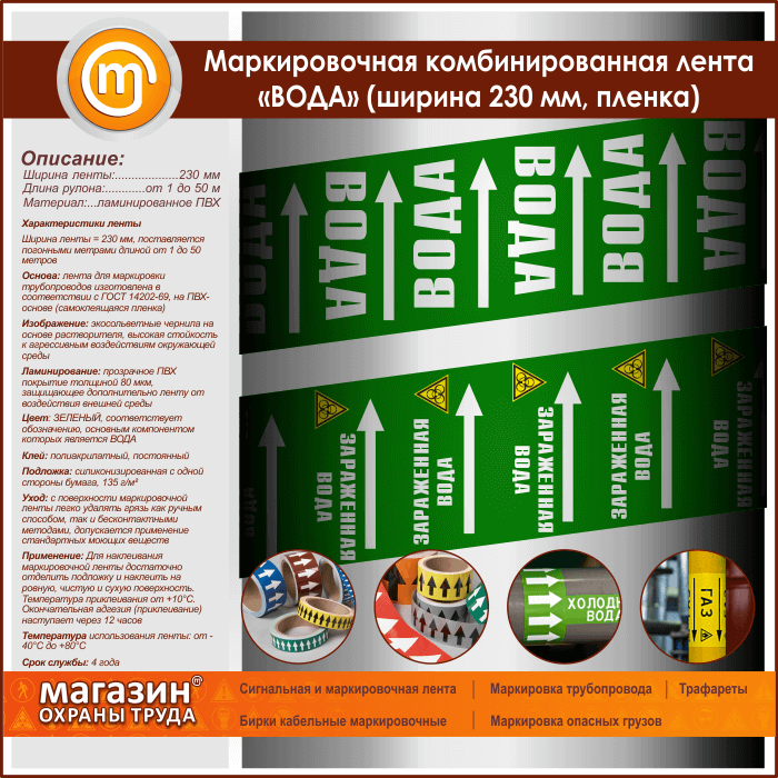 Маркировочная комбинированная лента «ВОДА» (ширина 230 мм, самоклеящаяся плёнка с ламинированием) в Ижевске купить