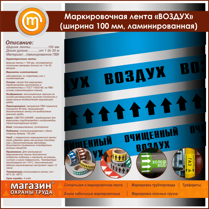 Маркировочная лента «ВОЗДУХ» (ширина 100 мм, самоклеящаяся плёнка) в Ижевске купить
