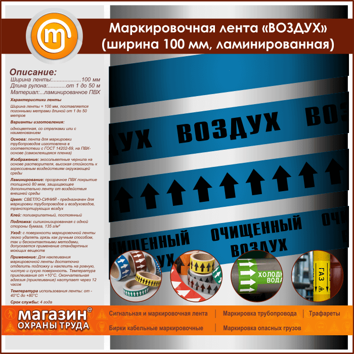 Маркировочная лента «ВОЗДУХ» (ширина 100 мм, самоклеящаяся плёнка с ламинированием) в Ижевске купить