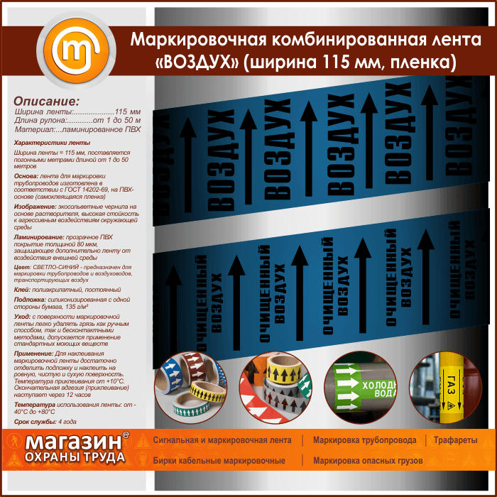 Маркировочная комбинированная лента «ВОЗДУХ» (ширина 115 мм, самоклеящаяся плёнка с ламинированием) в Ижевске купить