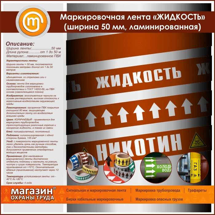 Маркировочная лента «ЖИДКОСТЬ» (ширина 50 мм, самоклеящаяся плёнка) в Ижевске купить