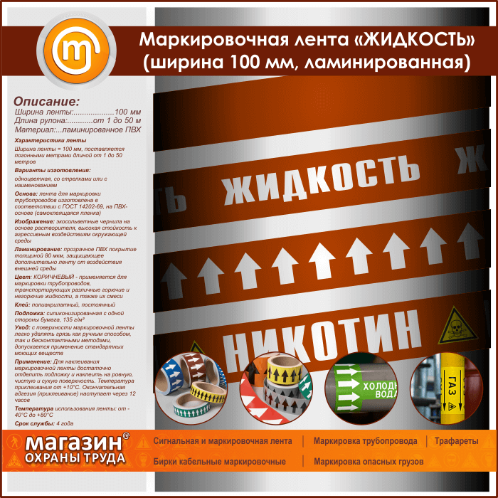 Маркировочная лента «ЖИДКОСТЬ» (ширина 100 мм, самоклеящаяся плёнка) в Ижевске купить
