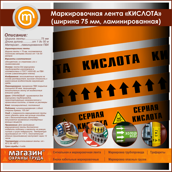 Маркировочная лента «КИСЛОТА» (ширина 75 мм, самоклеящаяся плёнка) в Ижевске купить