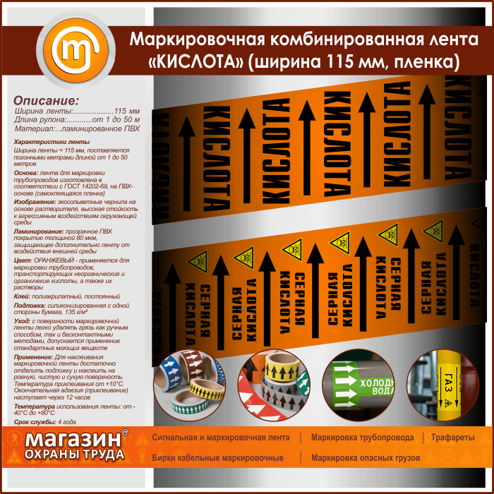 Маркировочная комбинированная лента «КИСЛОТА» (ширина 115 мм, самоклеящаяся плёнка с ламинированием)