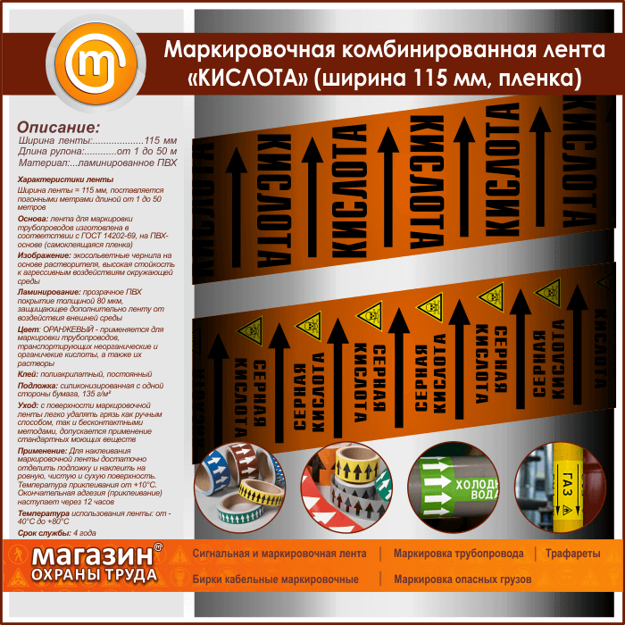 Маркировочная комбинированная лента «КИСЛОТА» (ширина 115 мм, самоклеящаяся плёнка с ламинированием) в Ижевске купить