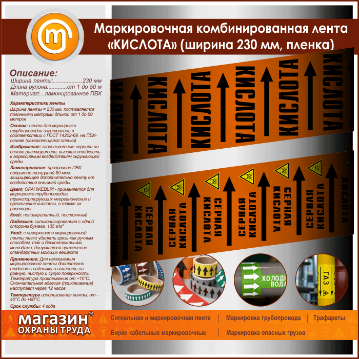Маркировочная комбинированная лента «КИСЛОТА» (ширина 230 мм, самоклеящаяся плёнка с ламинированием) в Ижевске купить
