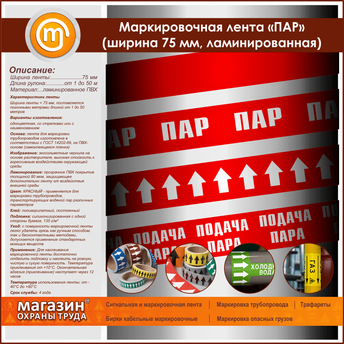 Маркировочная лента «ПАР» (ширина 75 мм, самоклеящаяся плёнка) в Ижевске купить