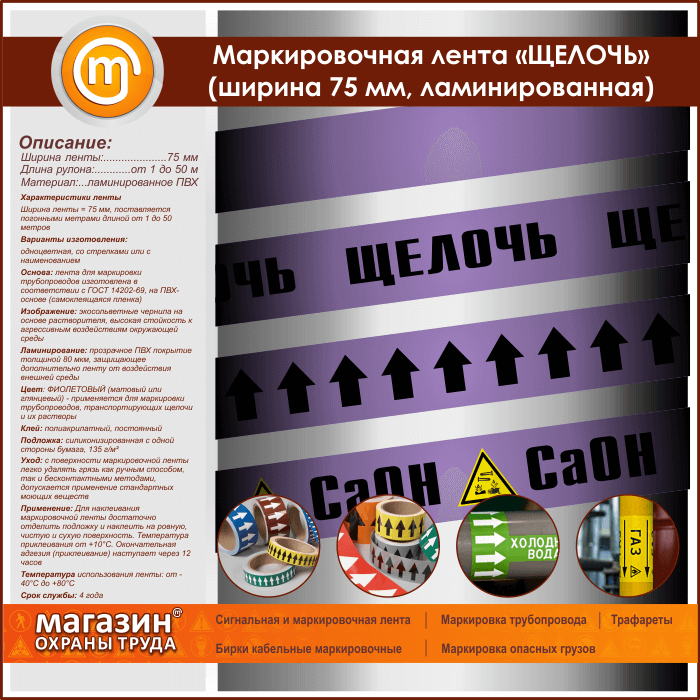Маркировочная лента «ЩЕЛОЧЬ» (ширина 75 мм, самоклеящаяся плёнка) в Ижевске купить