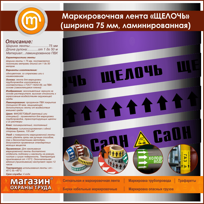Маркировочная лента «ЩЕЛОЧЬ» (ширина 75 мм, самоклеящаяся плёнка с ламинированием) в Ижевске купить
