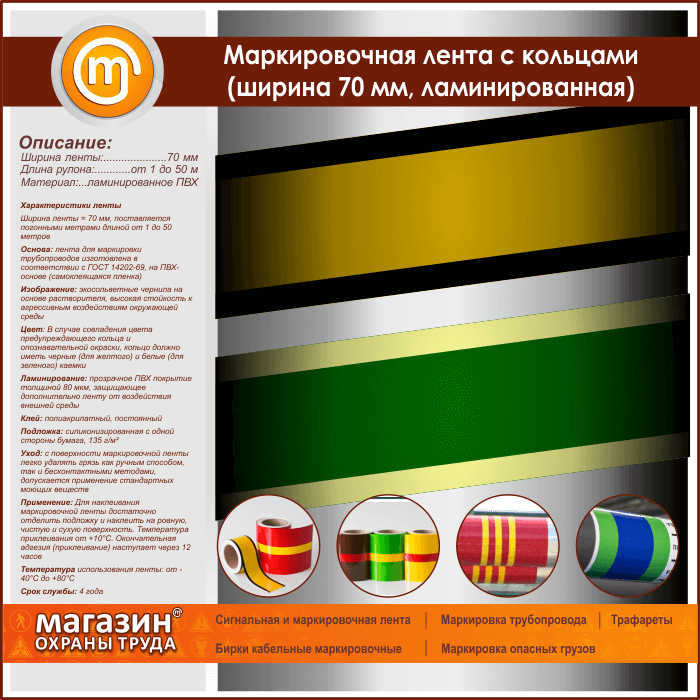 Маркировочная лента с кольцами (ширина 70 мм, самоклеящаяся плёнка с ламинированием) в Ижевске купить