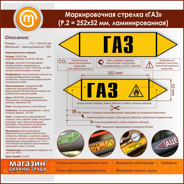 Маркировочная стрелка «ГАЗ» (P.2 = 252х52 мм, самоклеящаяся плёнка с ламинированием) в Ижевске купить