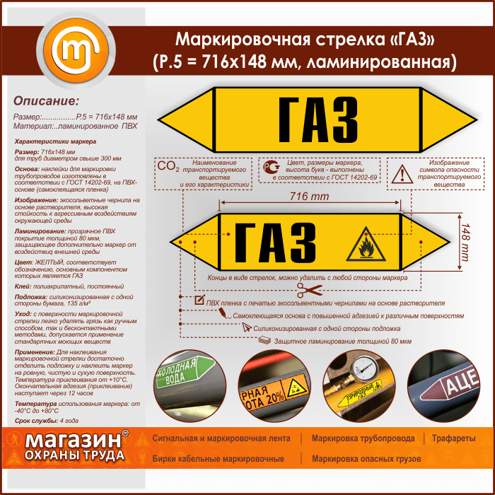 Маркировочная стрелка «ГАЗ» (P.5 = 716х148 мм, самоклеящаяся плёнка с ламинированием) в Ижевске купить