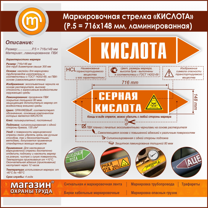 Маркировочная стрелка «КИСЛОТА» (P.5 = 716х148 мм, самоклеящаяся плёнка с ламинированием) в Ижевске купить