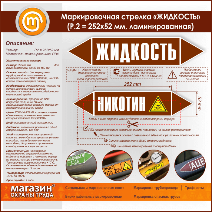 Маркировочная стрелка «ЖИДКОСТЬ» (P.2 = 252х52 мм, самоклеящаяся плёнка с ламинированием) в Ижевске купить