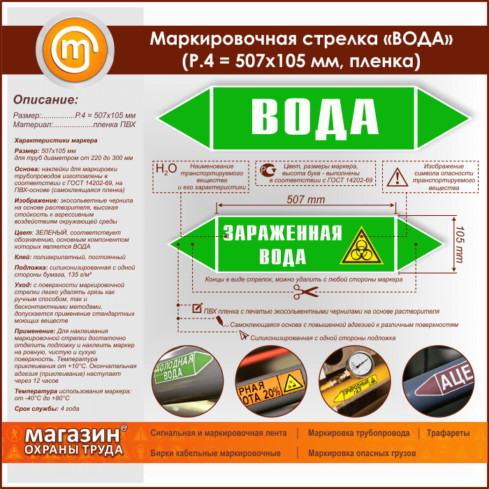 Маркировочная стрелка «ВОДА» (P.4 = 507х105 мм, самоклеящаяся плёнка) в Ижевске купить