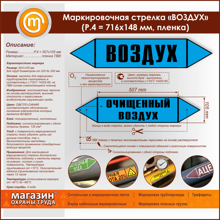 Маркировочная стрелка «ВОЗДУХ» (P.4 = 507х105 мм, самоклеящаяся плёнка) в Ижевске купить