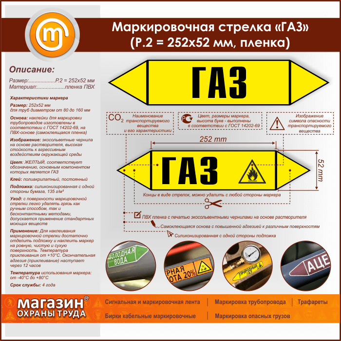 Маркировочная стрелка «ГАЗ» (P.2 = 252х52 мм, самоклеящаяся плёнка) в Ижевске купить