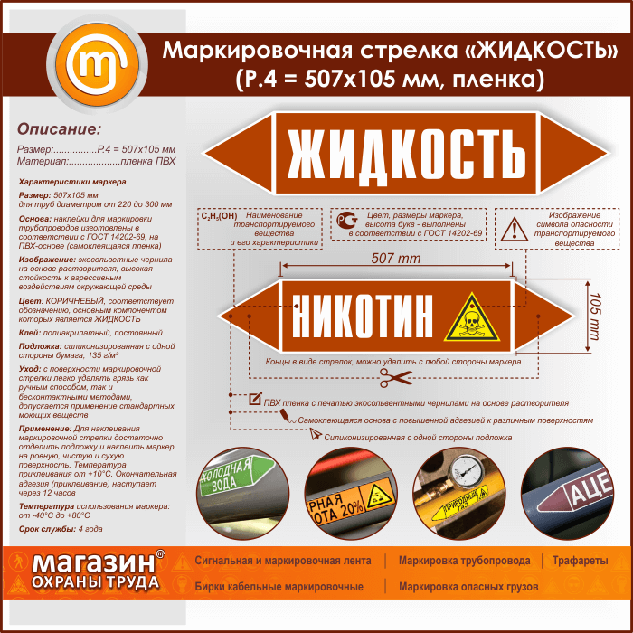 Маркировочная стрелка «ЖИДКОСТЬ»(P.4 = 507х105 мм, самоклеящаяся плёнка) в Ижевске купить