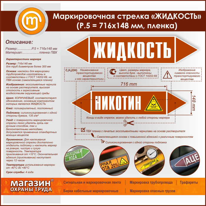 Маркировочная стрелка «ЖИДКОСТЬ» (P.5 = 716х148 мм, самоклеящаяся плёнка) в Ижевске купить