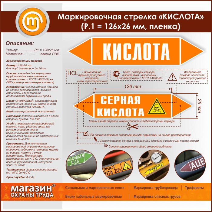 Маркировочная стрелка «КИСЛОТА» (Р.1 = 126х26 мм, самоклеящаяся плёнка) в Ижевске купить