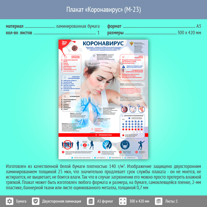 Плакат «Коронавирус» (М-23, ламинированная бумага, А3, 1 лист) в Ижевске купить