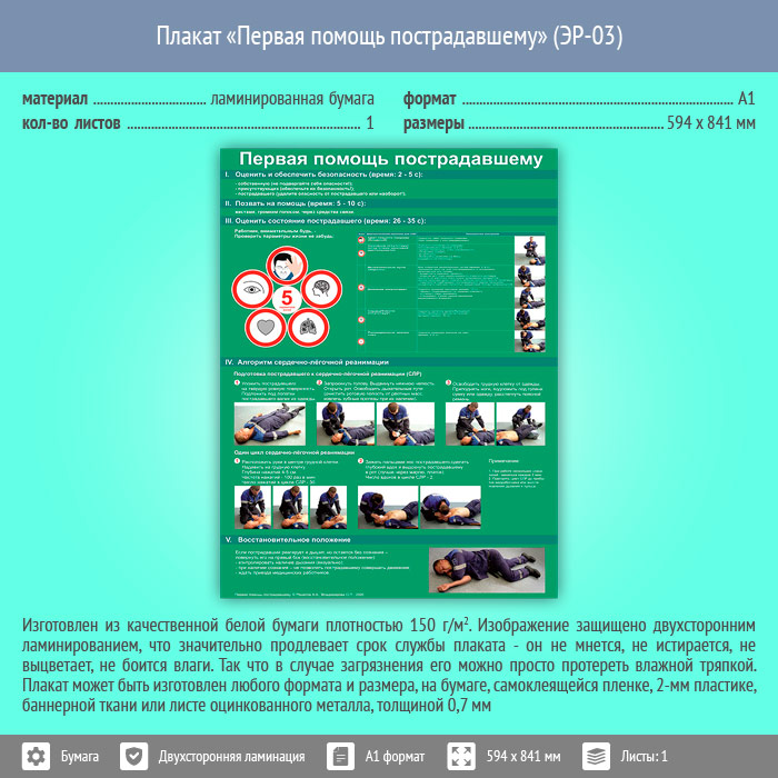 Плакат «Первая помощь пострадавшему» (ЭР-03, ламинированная бумага, А1, 1 лист) в Ижевске купить