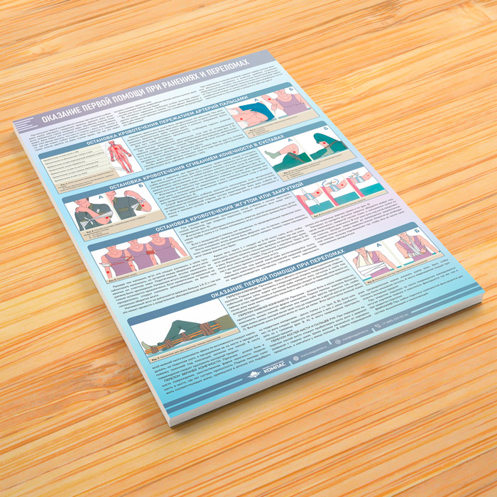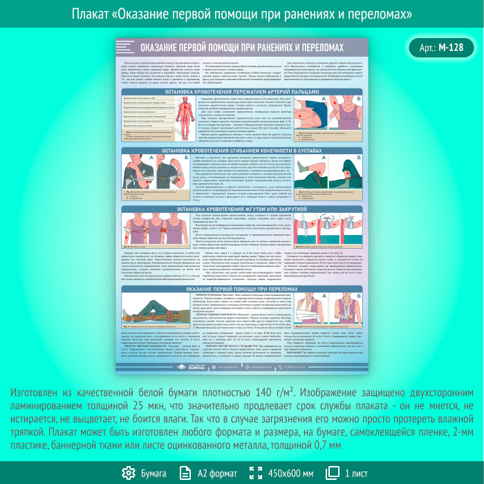 Плакат «Оказание первой помощи при ранениях и переломах» (М-128, ламинированная бумага, А2, 1 лист) в Ижевске купить