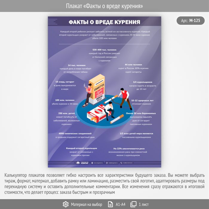 Плакат «Факты о вреде курения» (М-125, 1 лист) в Ижевске купить