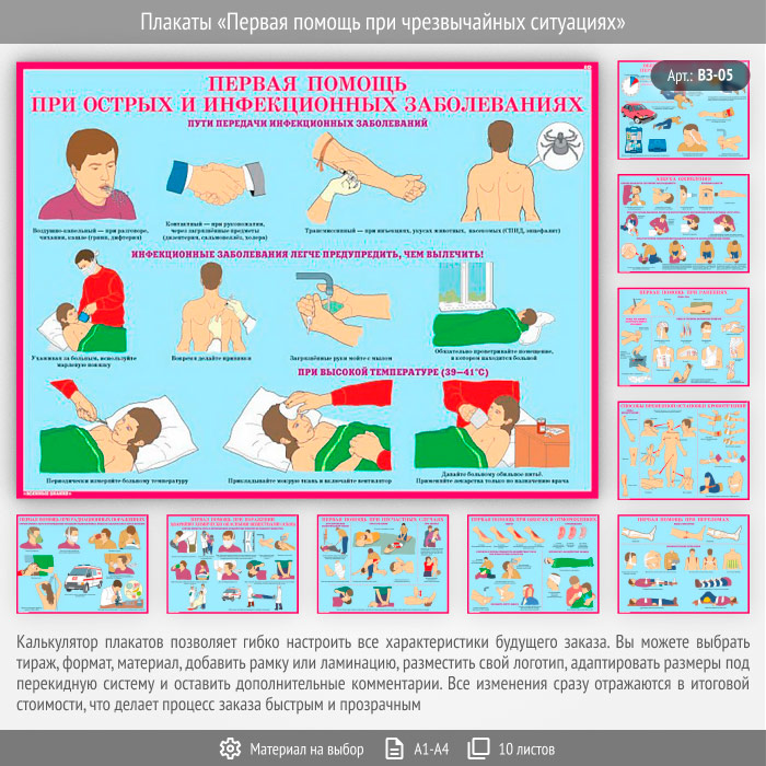 Плакаты «Первая помощь при чрезвычайных ситуациях» (ВЗ-05, 10 листов) в Ижевске купить