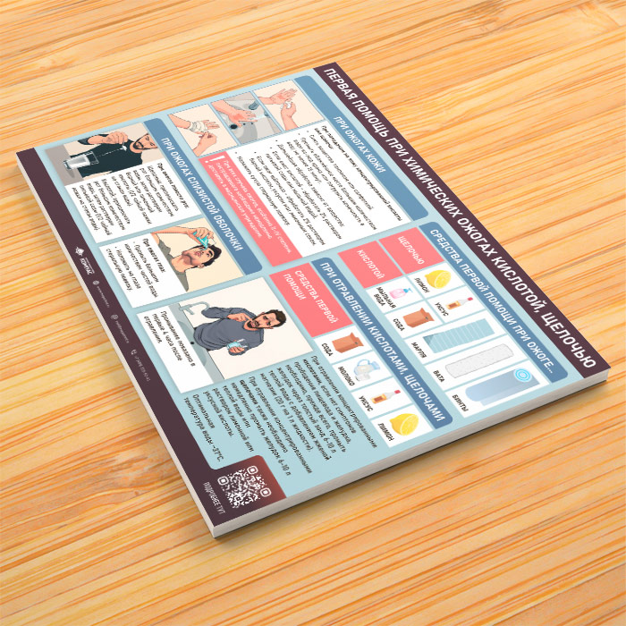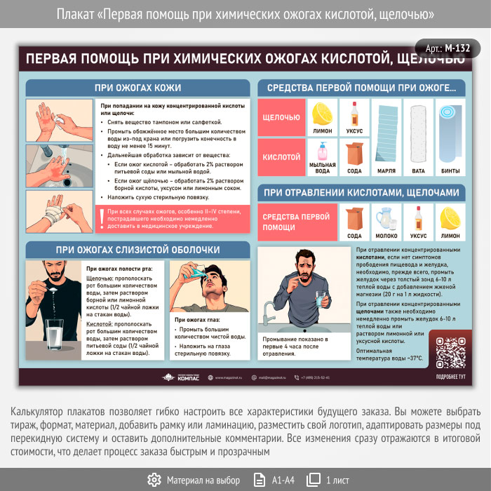 Плакат «Первая помощь при химических ожогах кислотой, щелочью» с QR (М-132, 1 лист) в Ижевске купить