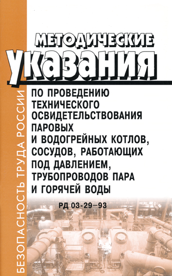 Методические указания по проведению технического освидетельствования паровых и водогрейных котлов, сосудов, работающих под давлением, трубопроводов пара и горячей воды. РД 03-29-93 (ЛД-103) в Ижевске купить
