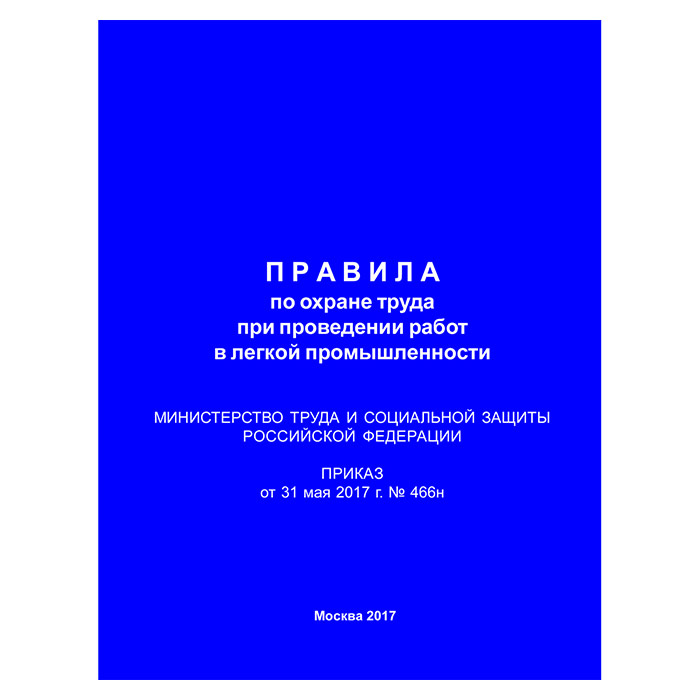 Правила по охране труда при проведении работ в легкой промышленности (Приказ Минтруда РФ от 31.05.2017 № 466н) (ЛАП-26) в Ижевске купить