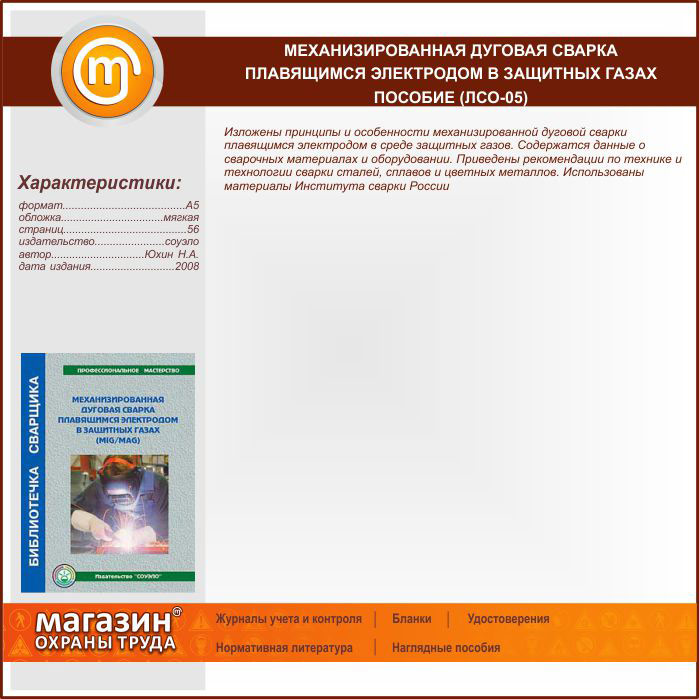 Механизированная дуговая сварка плавящимся электродом в защитных газах – пособие (ЛСО-05) в Ижевске купить