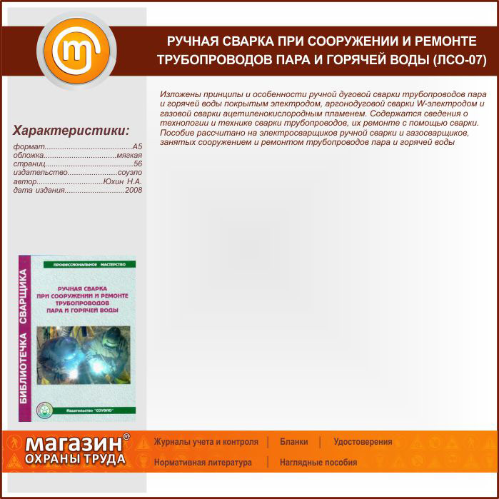 Ручная сварка при сооружении и ремонте трубопроводов пара и горячей воды (ЛСО-07) в Ижевске купить