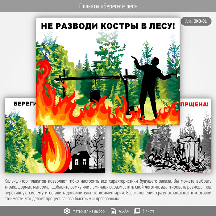Плакаты «Берегите лес» (ЭКО-01, 3 листа) в Ижевске купить