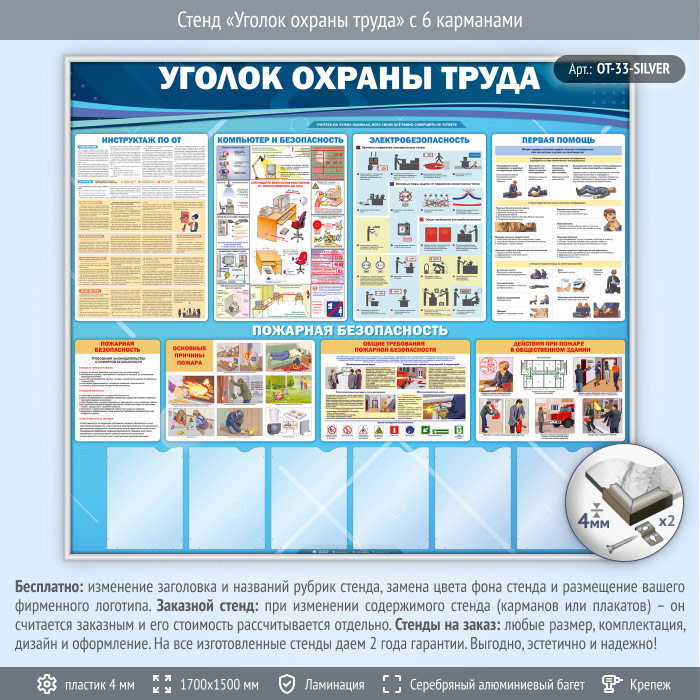 Стенд «Уголок охраны труда» с 6 карманами (OT-33-SILVER) в Ижевске купить