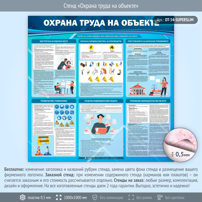Стенд «Охрана труда на объекте» (OT-34-SUPERSLIM) в Ижевске купить