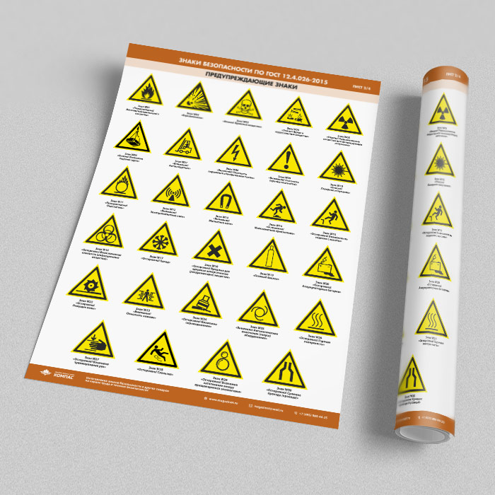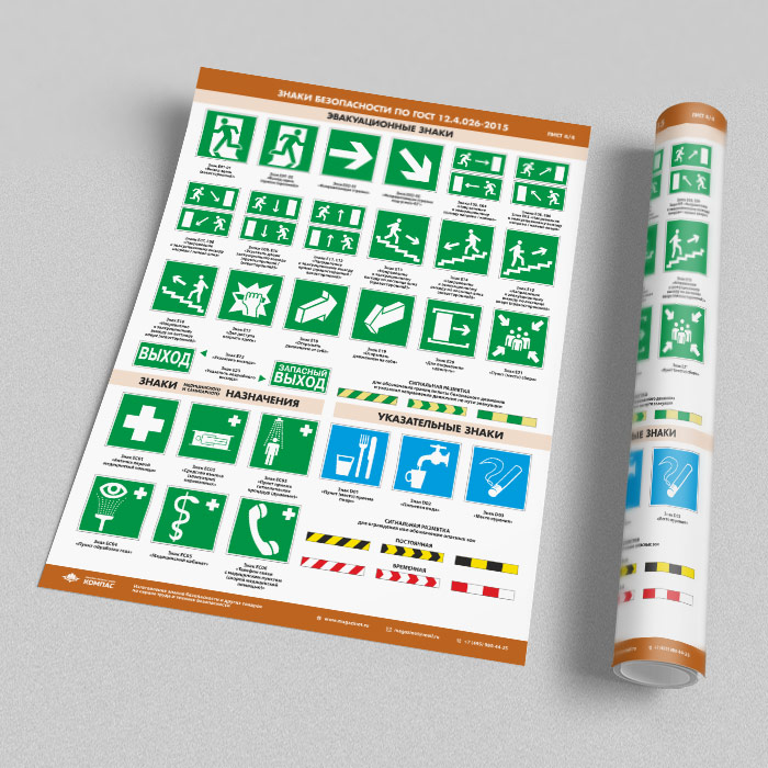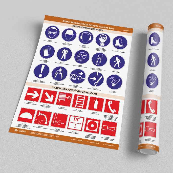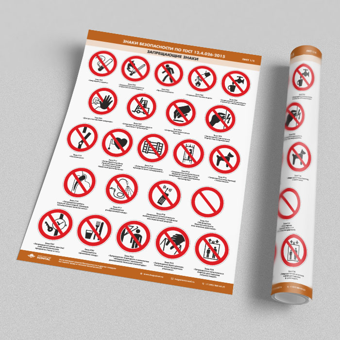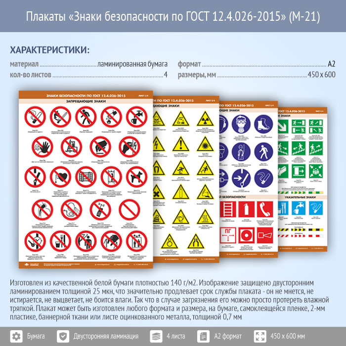 Плакаты «Знаки безопасности по ГОСТ 12.4.026-2015» (М-21, ламинированная бумага, А2, 4 листа) в Ижевске купить