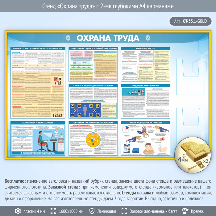 Стенд «Охрана труда» с 2-мя глубокими А4 карманами (OT-35.1-GOLD) в Ижевске купить