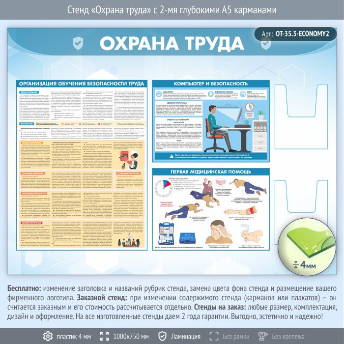 Стенд «Охрана труда» с 2-мя глубокими А5 карманами (OT-35.3-ECONOMY2) в Ижевске купить