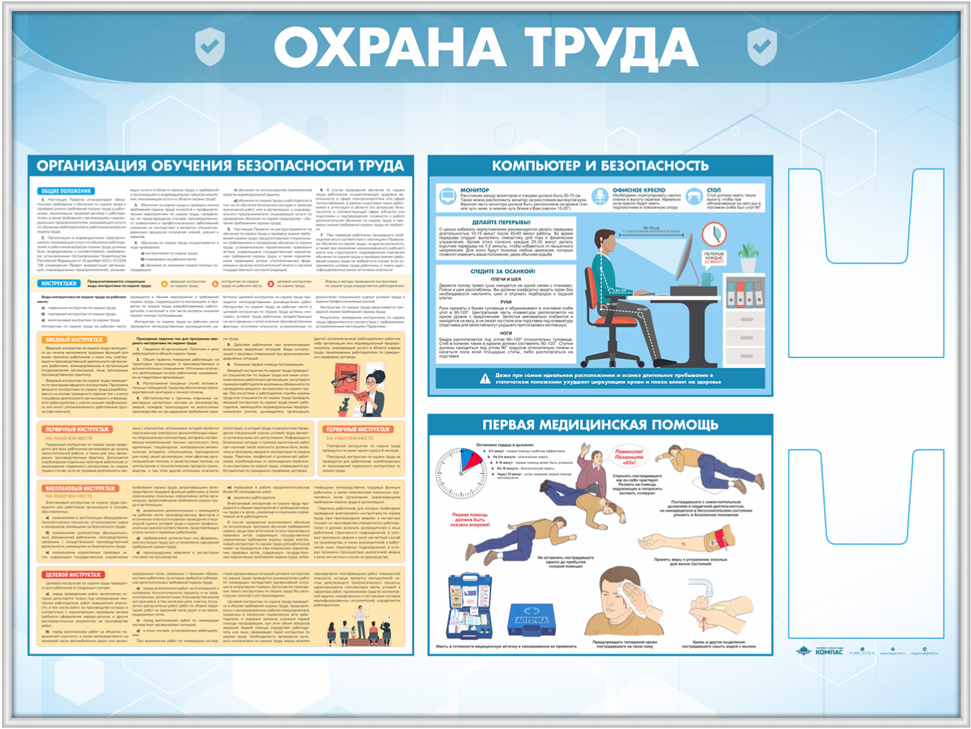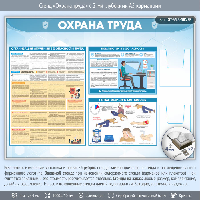 Стенд «Охрана труда» с 2-мя глубокими А5 карманами (OT-35.3-SILVER) в Ижевске купить
