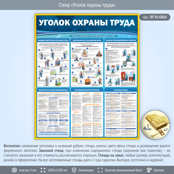 Стенд «Уголок охраны труда» (OT-36-GOLD) в Ижевске купить