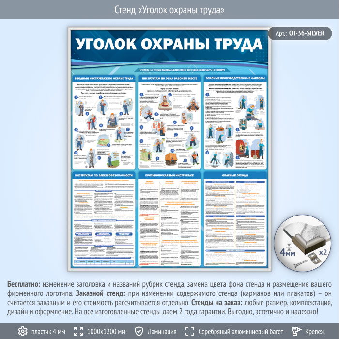 Стенд «Уголок охраны труда» (OT-36-SILVER) в Ижевске купить